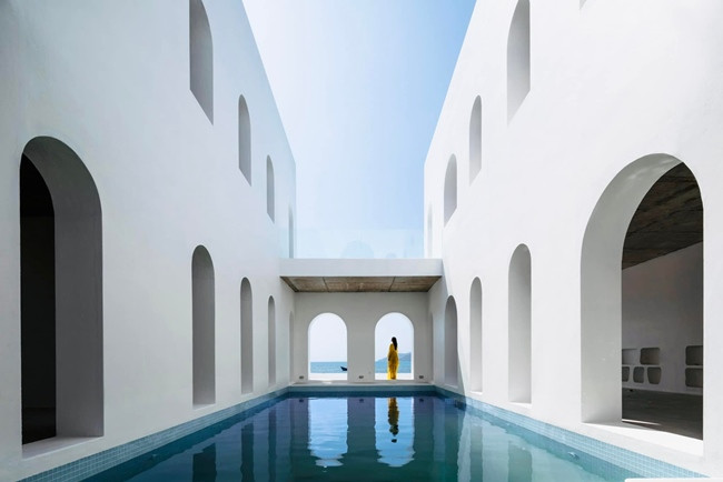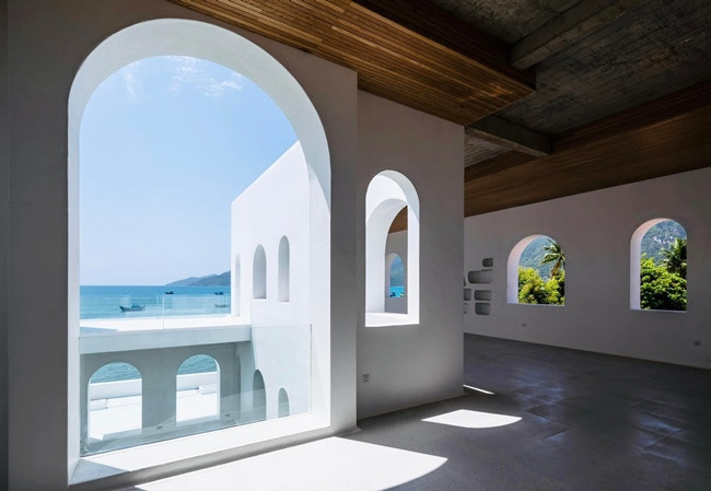 Với diện tích hơn 580 m2, căn biệt thự của người mẫu Phan Như Thảo và đại gia Đức An nổi bật giữa những căn nhà tọa lạc sát bờ biển Ninh Phước nhờ phong cách Santorini.Căn biệt thự được khởi công xây dựng từ cuối năm 2021 hiện chỉ còn hoàn thiện cửa và trang trí nội thất. Với 4 phòng ngủ, toàn bộ căn biệt thự được thiết kế với gam màu trắng, thể hiện sự sang trọng, quý phái trong từng ngóc ngách. Chia sẻ với VietNamNet, Phan Như Thảo cho biết 2/3 diện tích là không gian sinh hoạt chung và rất ít phòng ngủ vì cô và chồng muốn mọi người trong gia đình có nhiều thời gian cho nhau thay vì ở phòng riêng.Tất cả cửa sổ và cửa ra vào đều được thiết kế dạng vòm nhằm tạo sự mềm mại, uyển chuyển cho toàn bộ kiến trúc.Sàn nhà được nữ người mẫu chọn loại gạch cao cấp với gam màu xám, kết hợp hài hòa với tông tường màu trắng. Cùng với đó, trần nhà được cô chọn ốp gỗ, mang đến một phong cách hoàn toàn mới mẻ và hiện đại cho không gian của căn biệt thự.Điểm thu hút của căn biệt thự là chiếc cầu thang hẹp kết hợp cùng tông tường màu trắng 2 bên, khiến người đi có cảm giác chạm đến bầu trời.Căn biệt thự được thiết kế với nhiều khung cửa sổ hai bên tường nhằm tạo sự thông thoáng và mát mẻ cho người sở hữu.Hồ bơi riêng với tầm nhìn hướng biển, tạo cảm giác sang trọng không kém phần lãng mạn.Không chỉ hướng biển ở đối diện, căn biệt thự còn có thể trông thấy cảnh núi non hùng vĩ từ phía bên phải, tạo cảm giác hài hòa với thiên nhiên cho chủ nhân tòa biệt thự.Căn biệt thự là sự kết hợp giữa lối thiết kế tối giản và gam màu trắng, hướng đến sự hài hòa với nhiên nhiên nhưng không mất đi vẻ sang trọng quý phái, mà tạo ra một không gian sống đáng mơ ước. Căn biệt thự có ten Santo By The Sea là một trong 3 căn biệt thự ven biển cách nhau 150 - 200 m của Phan Như Thảo. Hai căn còn lại diện tích lớn hơn, 1000 m2 và 4000 m2.