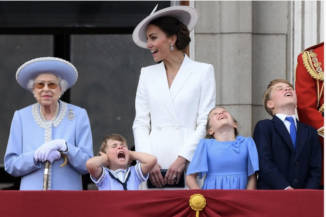 Hoàng tử Anh Louis, thừa kế ngai vàng hàng thứ 5, đã vẫy tay đầy phấn khích với đám đông trước khi được chị gái thì thầm, kéo tay xuống. Tuy nhiên, cậu bé lại nhanh chóng lặp lại hành động này.