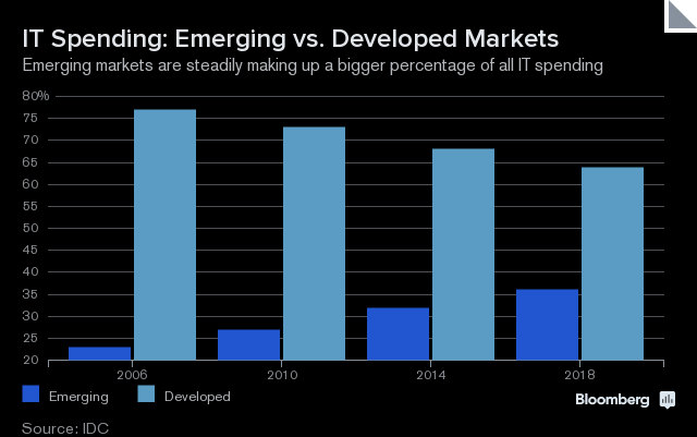 Dự án cáp biển của Brazil khắc họa vấn đề lớn hơn mà thung lũng Silicon cũng như toàn bộ ngành công nghệ Mỹ đang đối mặt: các thị trường mới nổi đang chi tiêu nhiều hơn cho công nghệ thông tin, nắm thị phần toàn cầu lớn hơn trong bối cảnh tăng trưởng từ những nước phát triển dần chậm lại.