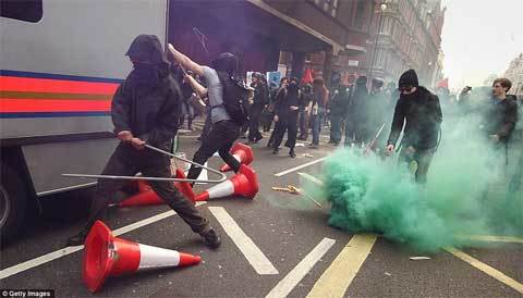 Chỉ huy Bob Broadhurst của cảnh sát London xác nhận, hơn 250.000 người tham gia biểu tình hòa bình nhưng chỉ khoảng 500 người gây rối. Hàng trăm người bị bắt và cảnh sát cho biết, con số này còn tăng. Hàng chục người bị thương sau khi cuộc biểu tình bắt đầu nổ ra vào buổi chiều.