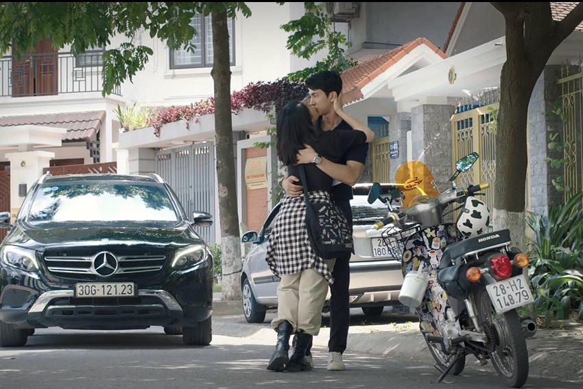 Đóng cặp trong phim 'Garage hạnh phúc' sắp lên sóng, Bình An và Quỳnh Kool có nhiều cảnh khóa môi táo bạo.