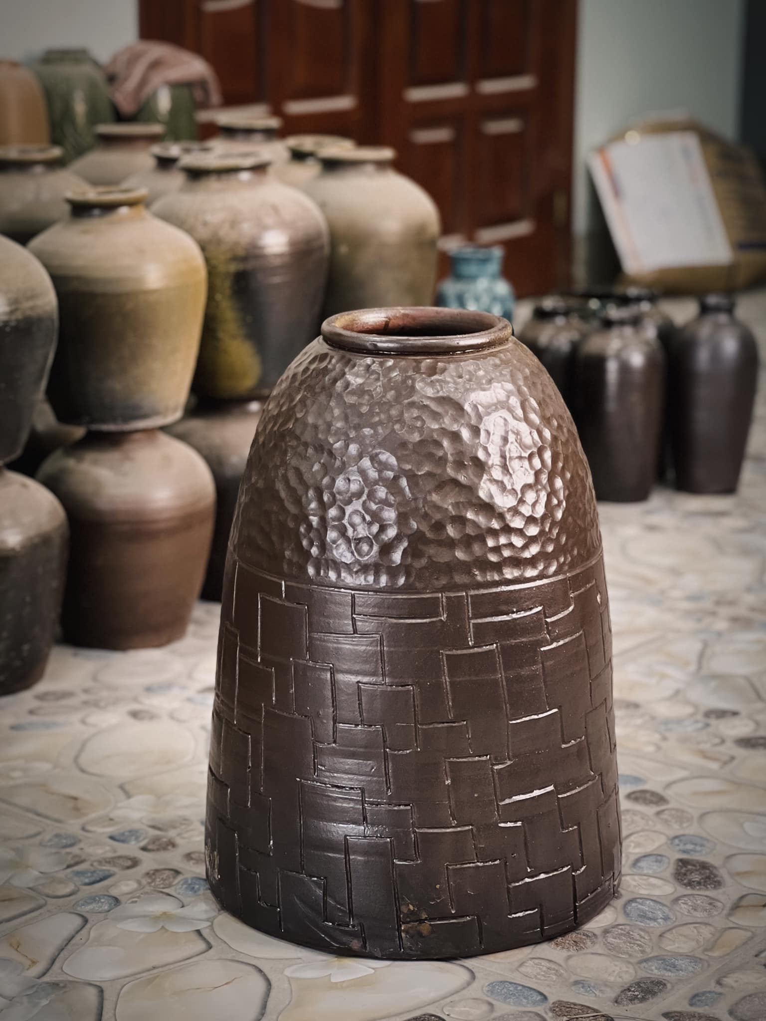 Hiện ngoài cửa hàng của chị chỉ còn mấy chục bình chuông. Trong khi, từ giờ đến Tết chỉ kịp vào được hai chuyến lò nung chuông vuốt tay. Vậy nên, nguồn cung ra thị trường cũng không có nhiều.