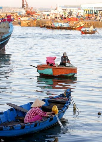 Trên bờ thì đi tắm biển, dắt chó đi dạo hay tập thể dục... dưới thuyền, các hoạt động buôn bán, dọn dẹp, chuẩn bị ngư cụ cho chuyến đi biển sắp tới...