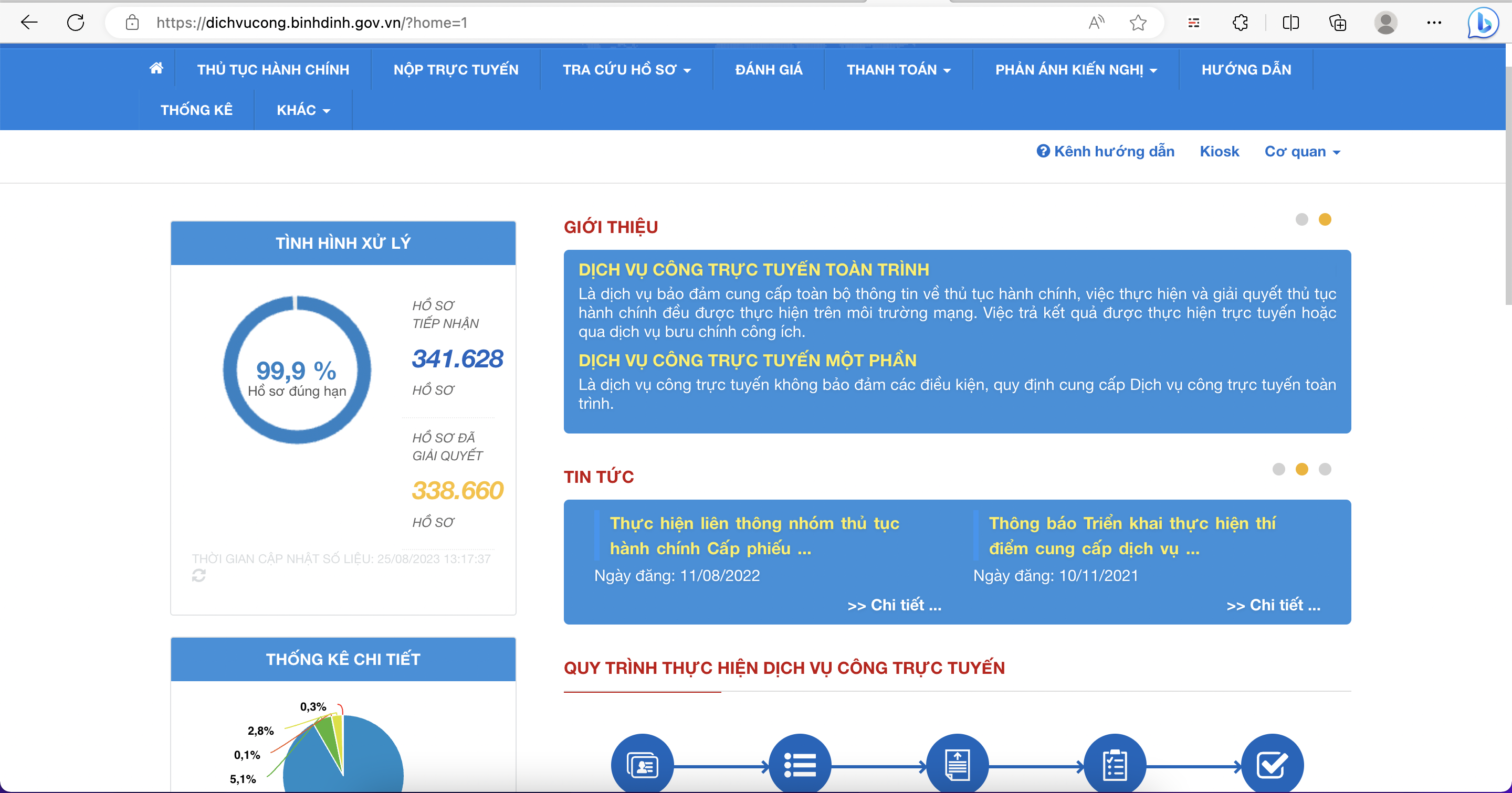 Theo số liệu từ Cổng Dịch vụ công tỉnh Bình Định, trong năm 2023, tính đến ngày 25/8, tỷ lệ hồ sơ giải quyết đúng hạn đạt 99,9%. Để đạt được những kết quả trên, UBND tỉnh đã có nhiều giải pháp chỉ đạo trong công tác giải quyết thủ tục hành chính, nâng cao mức độ hài lòng của người dân, doanh nghiệp.