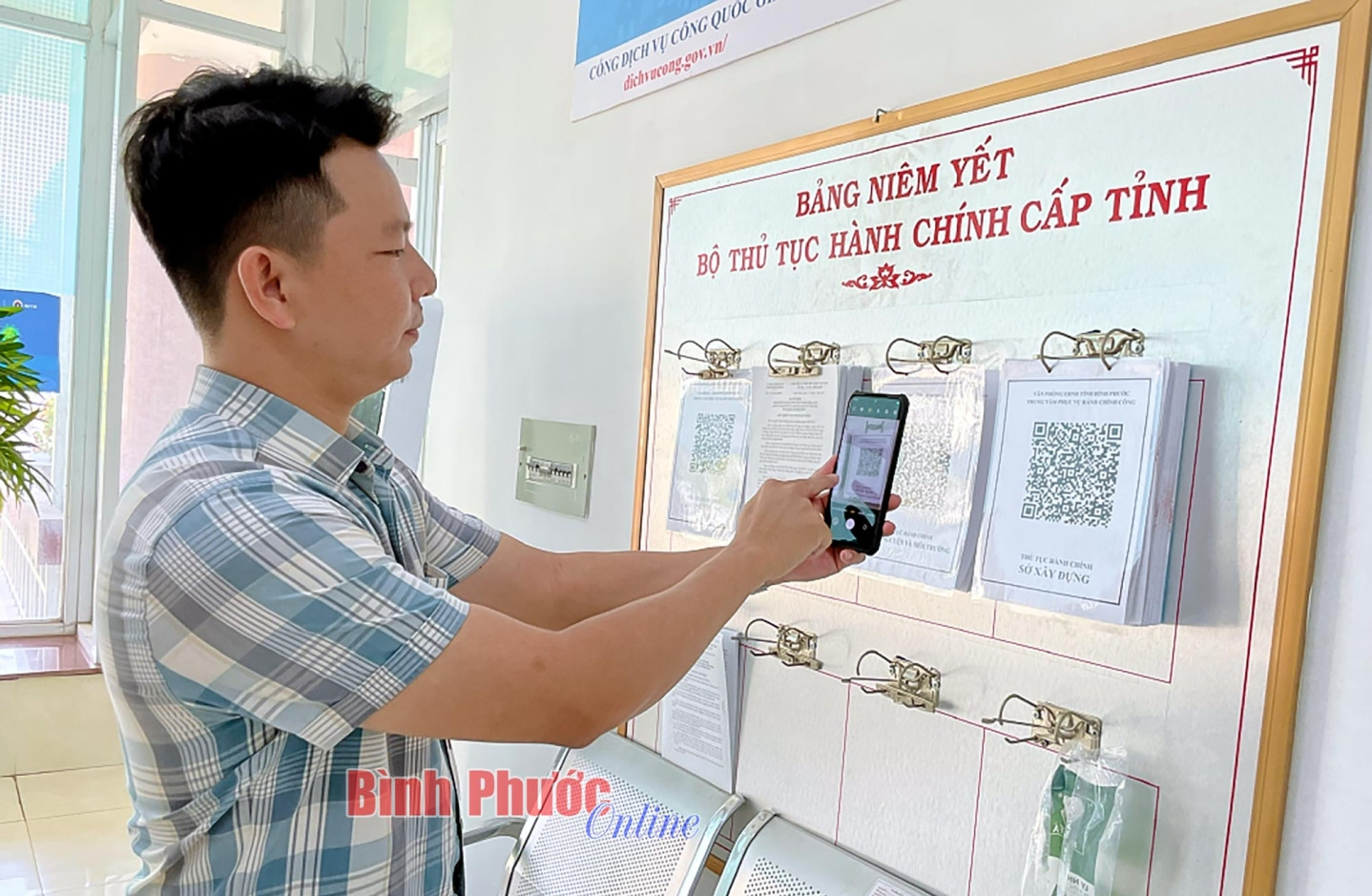 Người dân quét mã QR để tra cứu TTHC được niêm yết tại Trung tâm Phục vụ hành chính công tỉnh.