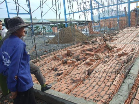 Theo một số nhân chứng cho biết: vào thời điểm trên có khoảng 10 thợ đang tô hồ cho một bức tường dài khoảng 24 mét, cao 8 mét thì trời chuyển mưa kèm theo gió.