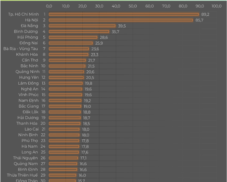 Theo báo cáo Chỉ số thương mại điện tử (EBI) Việt Nam năm 2023 vừa được Hiệp hội Thương mại điện tử Việt Nam (Vecom) công bố, chỉ số EBI của Bình Dương xếp thứ 4 cả nước (giữ nguyên thứ hạng năm 2022), với 35,7 điểm.