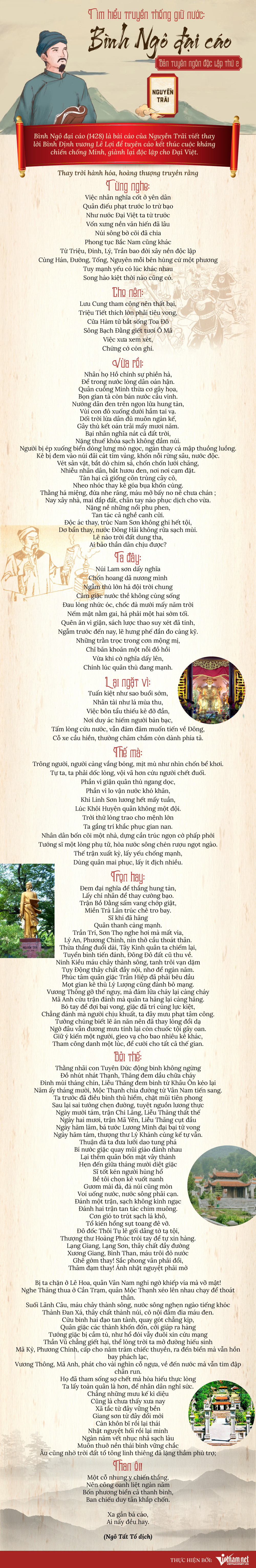 Đây cũng là lý do VietnamNet đăng tải lại bài Cáo Bình Ngô trong chuyên đề Tìm hiểu truyền thống giữ nước của cha ông.