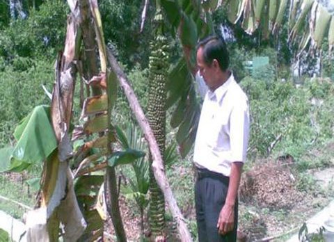 | Cây chuối kỳ lạ nhà ông Khẳng có gần 200 nải (Nguồn: Người lao động online) |