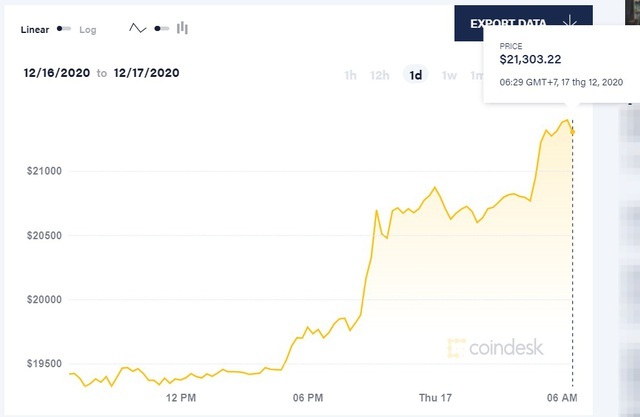 Trước đó, từ tối 16/11, giá trị Bitcoin đã tăng mạnh, và vượt qua mốc 20.000 USD trước sự ngỡ ngàng của các nhà đầu tư.