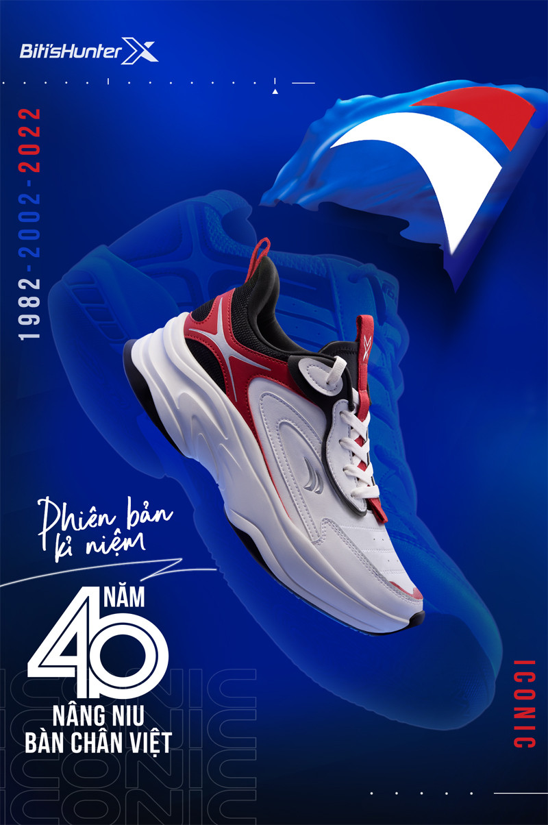 Ngoài các mẫu giày thông thường, nhân dịp kỷ niệm 40 năm ra mắt thị trường, Biti’s còn mang đến phiên bản giày Biti’s Hunter X đặc biệt với thiết kế bắt mắt và tinh tế. Giày thể thao nam Biti’s Hunter X phiên bản đặc biệt sở hữu công nghệ hiện đại của thương hiệu, bao gồm: đế giữa EVA, đế ngoài cao su ma sát tốt, phần lưỡi gà với cấu tạo từ si nubuck hoa văn giả da, mặt dưới vải thun cá sấu.
