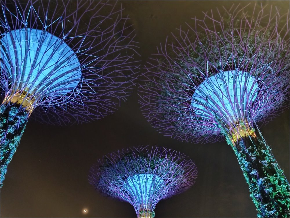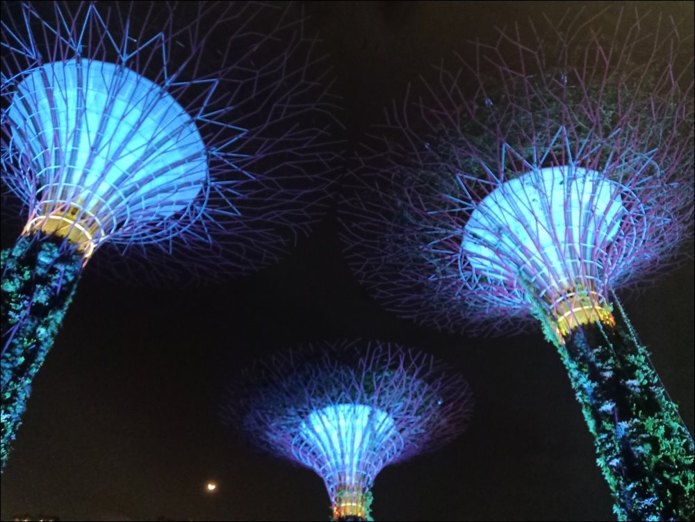 Tương tự, ở tấm ảnh trên tay chụp hơi rung nên ảnh mờ nhẹ, các chi tiết ở 3 cụm cây không thể hiện rõ ràng như ảnh dưới. Bầu trời ở ảnh dưới nhìn rõ ràng hơn. Mặt trăng ở ảnh dưới cũng hiển thị rõ ràng hơn so với ảnh trên.