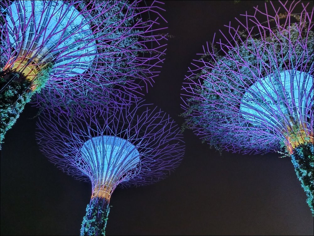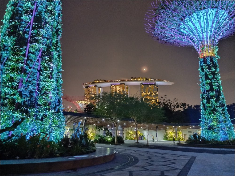 So sánh hai ảnh cùng chụp từ Oppo F11 Pro ở trên, một tấm chụp chế độ thường, một tấm phía dưới chụp chế độ Đêm sẽ thấy có sự khác biệt. Do ánh sáng chênh lệch, dòng chữ ở tấm ảnh phía trên bị loá mờ, trong khi dòng chữ đó ở ảnh dưới được kiểm soát ánh sáng rất tốt, không có hiện tượng loá. Phần bầu trời đêm ở ảnh dưới cũng nhìn rõ hơn ảnh trên. Phần cây cối ở ảnh dưới cũng được làm nét và sáng rõ hơn.