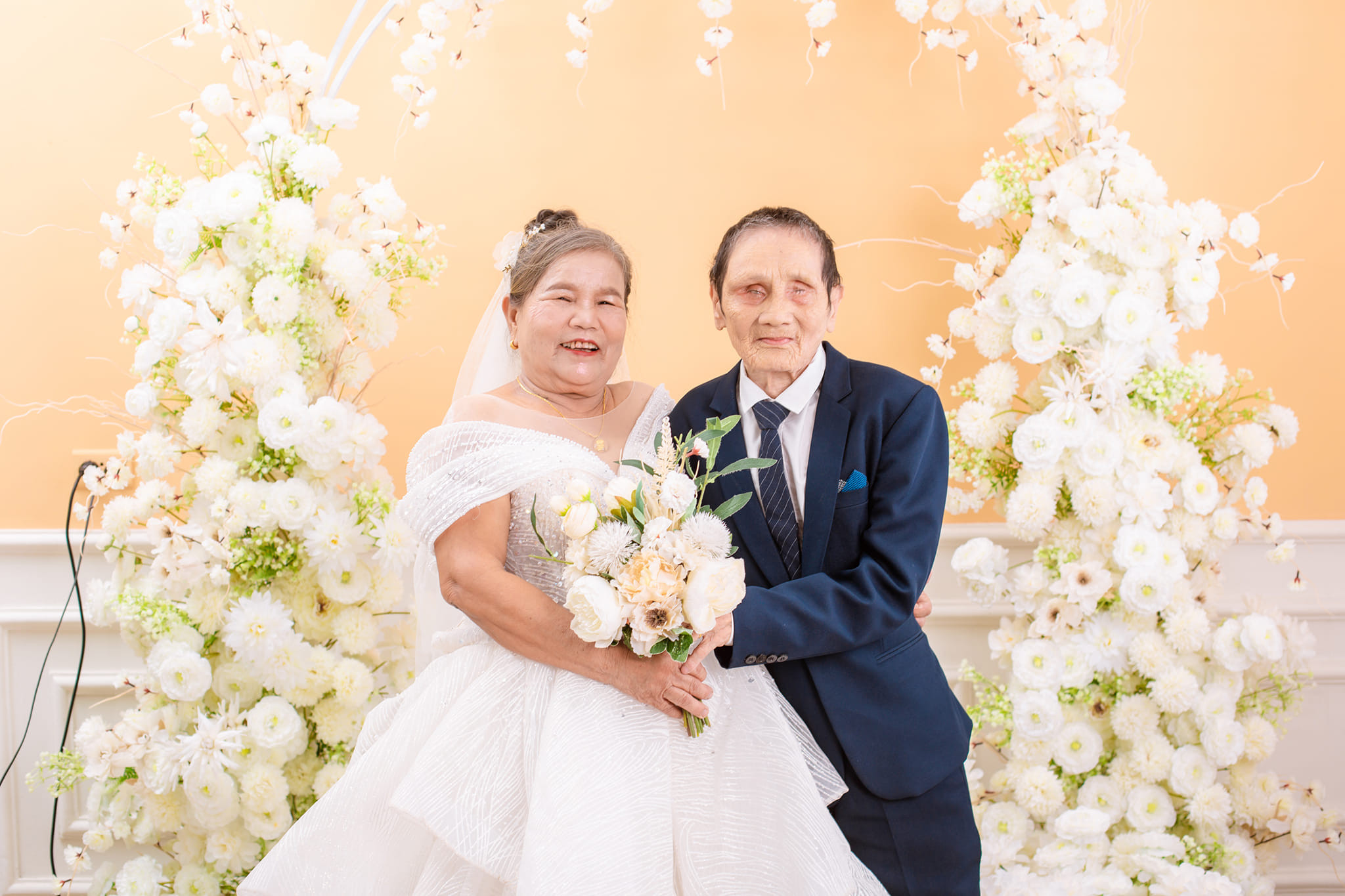 Chị Nguyễn Thị Sâm (Nghệ An) là người lên ý tưởng chụp bộ ảnh cưới này cho bố mẹ mình - ông Nguyễn Cảnh Thiệm, 79 tuổi và bà Phan Thị Nhung, 74 tuổi.