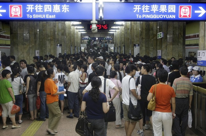 Giờ cao điểm tại Bắc Kinh thường chứng kiến tình trạng ùn tắc kéo dài tại các ga xe lửa. Trong năm 2008, lượng người tại các nhà ga thậm chí còn khủng khiếp hơn trong ảnh.