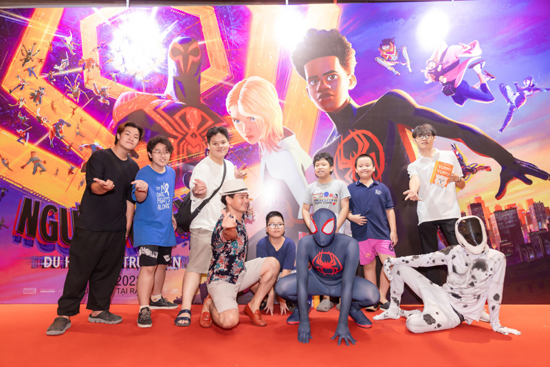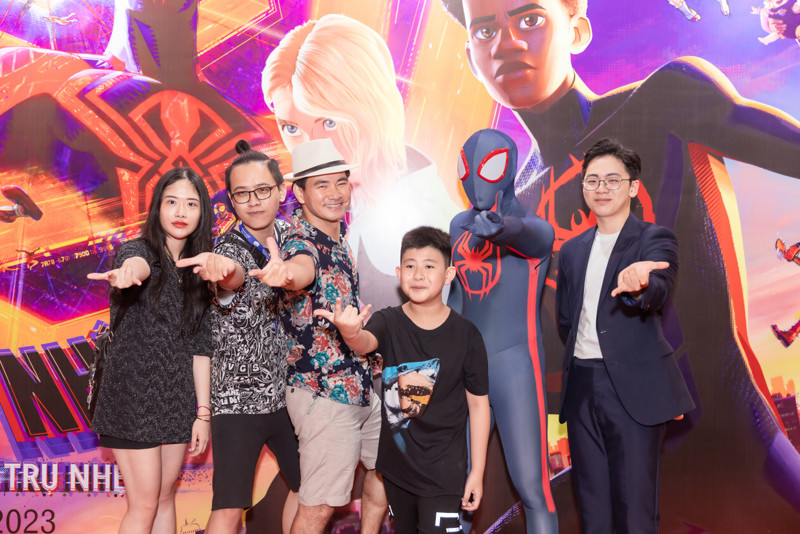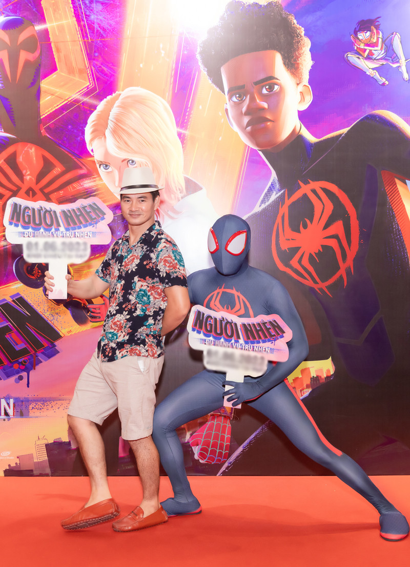 Sự xuất hiện của Xuân Bắc và hai con đã hâm nóng không khí rạp chiếu buổi ra mắt bom tấn hoạt hình 'Người Nhện 2'.