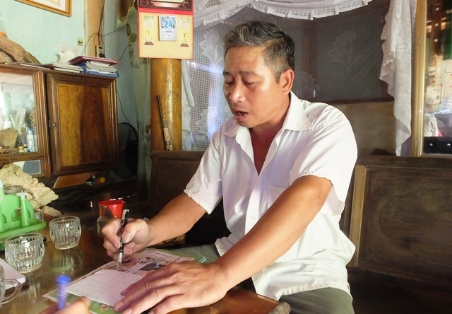 | Ông Toản trưởng thôn đang thống kê những hộ bỏ làng đi làm ăn xa |