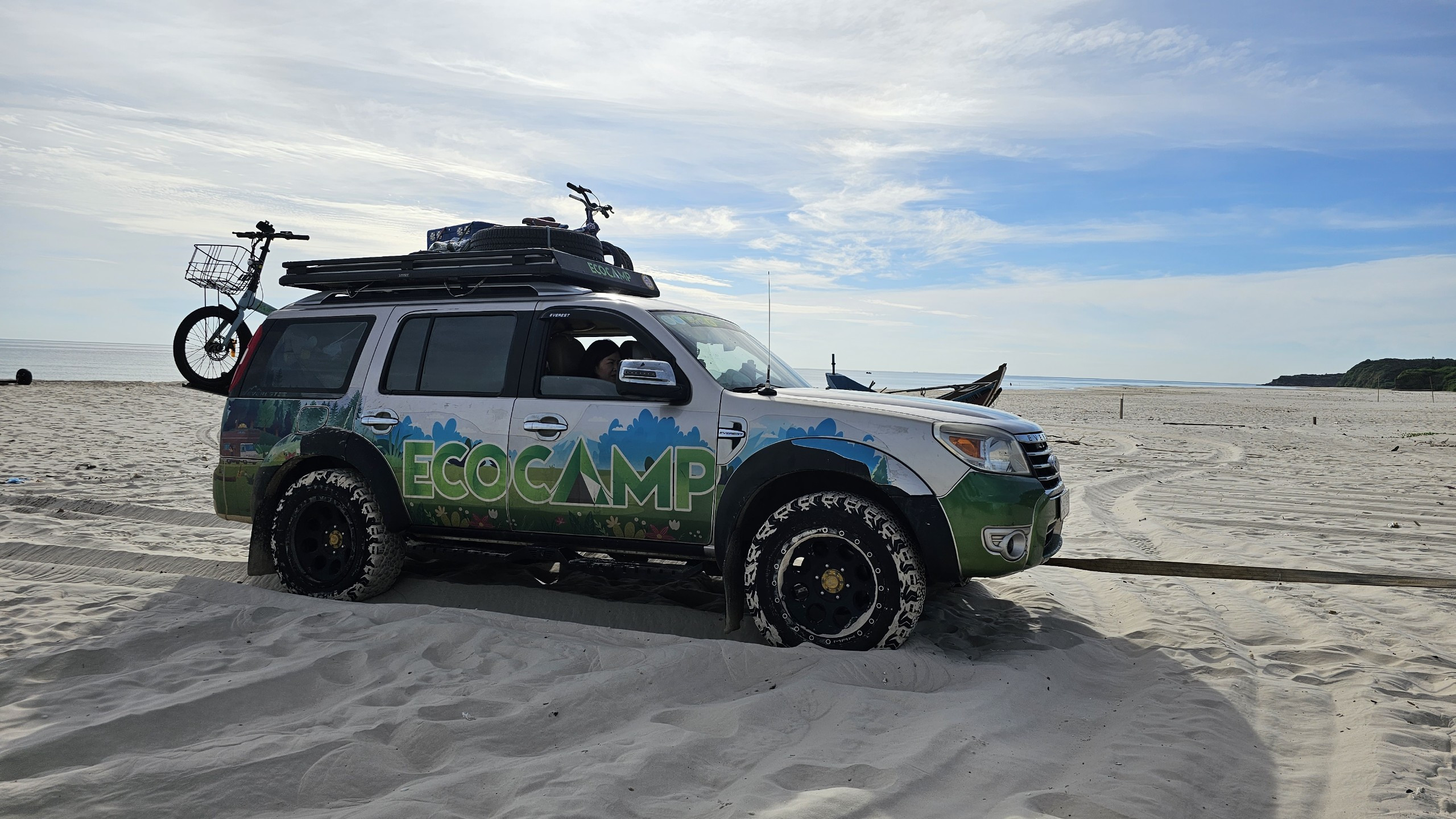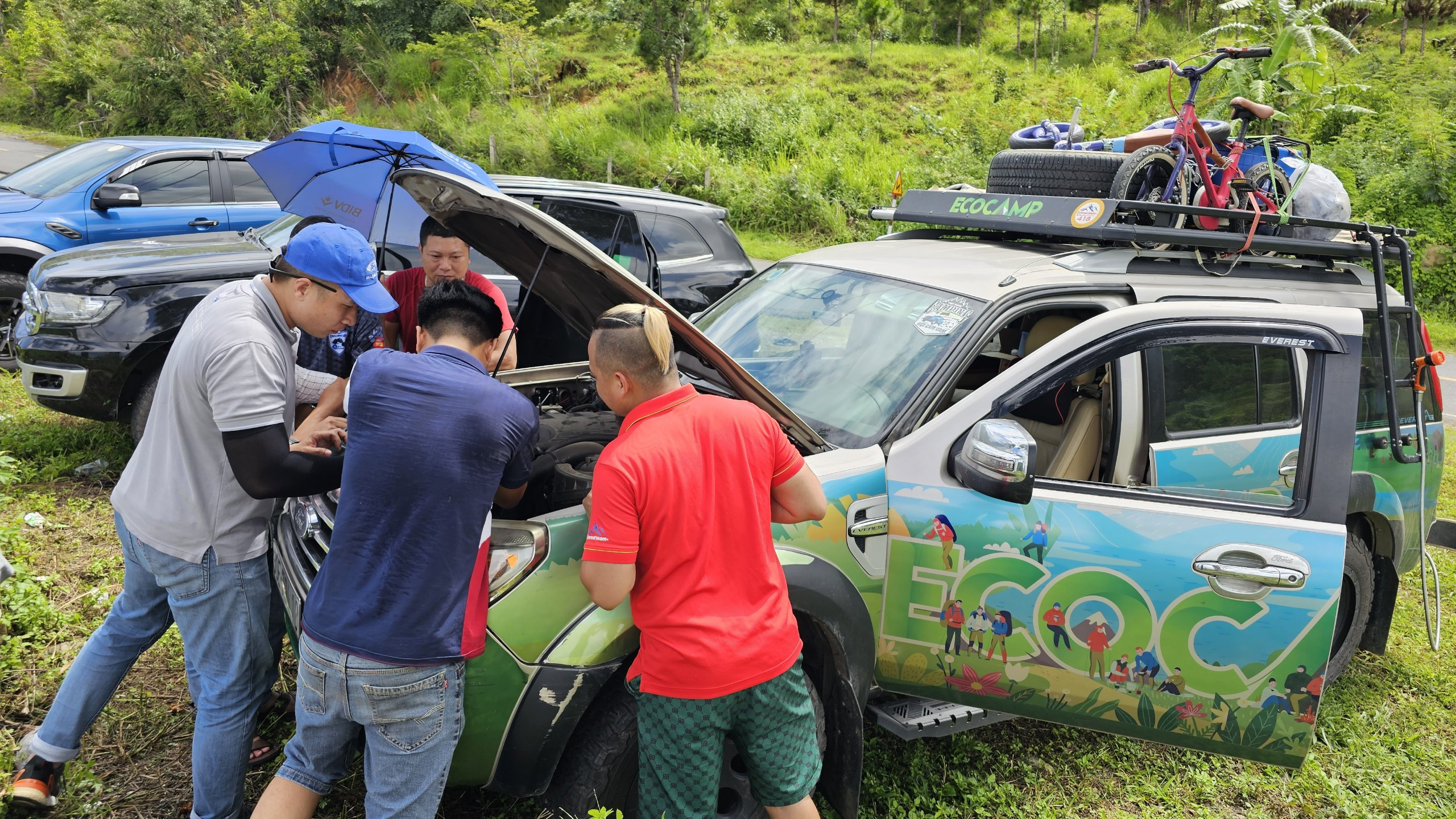 Trong hành trình, gia đình nhỏ cũng gặp một số sự cố như sa lầy ở biển hay bục két nước làm mát khi đang leo đèo Đại Ninh (Lâm Đồng).