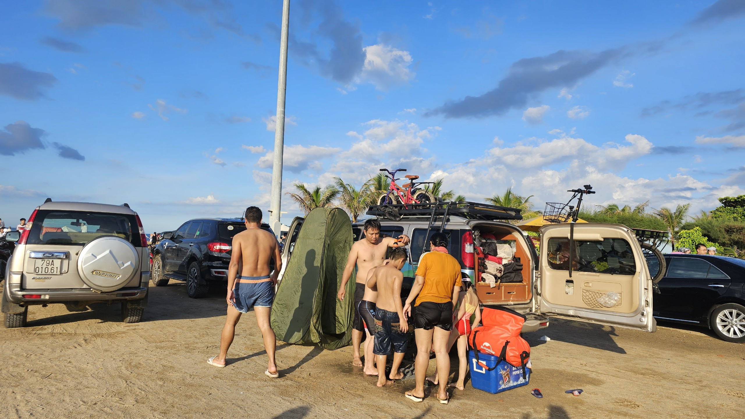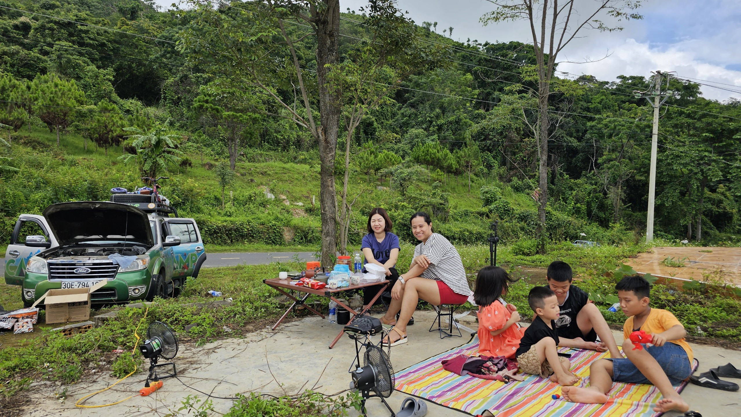 Ngày 21/6, gia đình anh Đặng Minh Trường bắt đầu hành trình lái xe, cắm trại xuyên Việt, “đón mùa hè rực rỡ”. Ba bạn nhỏ Đặng Lưu An Tường (10 tuổi), Đặng Lưu Khánh Linh (7 tuổi) và Lưu Đặng Phương Đông (4 tuổi) vô cùng háo hức.