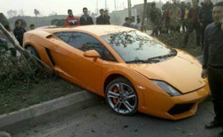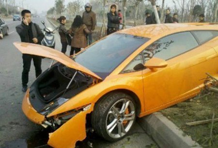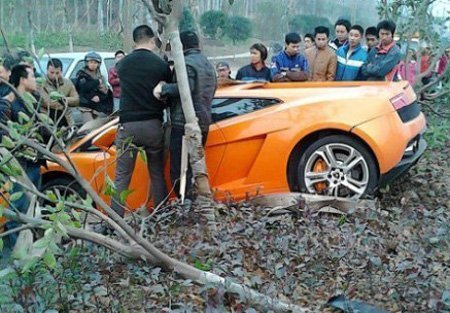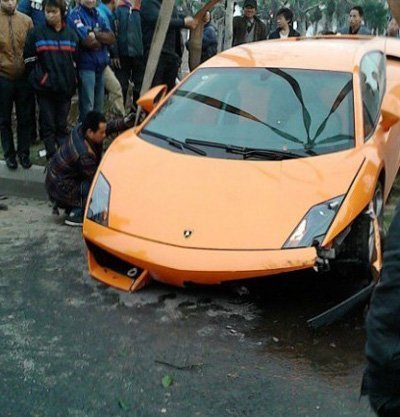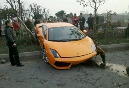 Siêu xe Lamborghini Gallardo màu cam vừa gặp nạn khi mất lái, đâm liên tiếp vào cây trên đường phố Nội Giang, tỉnh Tứ Xuyên, Trung Quốc. Rất may không có thương vong về người.