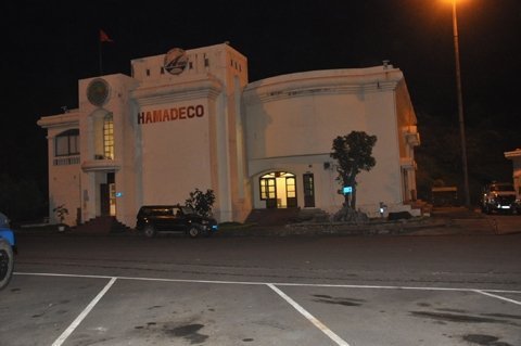 Tòa nhà 3 tầng nằm nép mình bên núi, lưng quay ra biển, hướng mặt trực diện vào