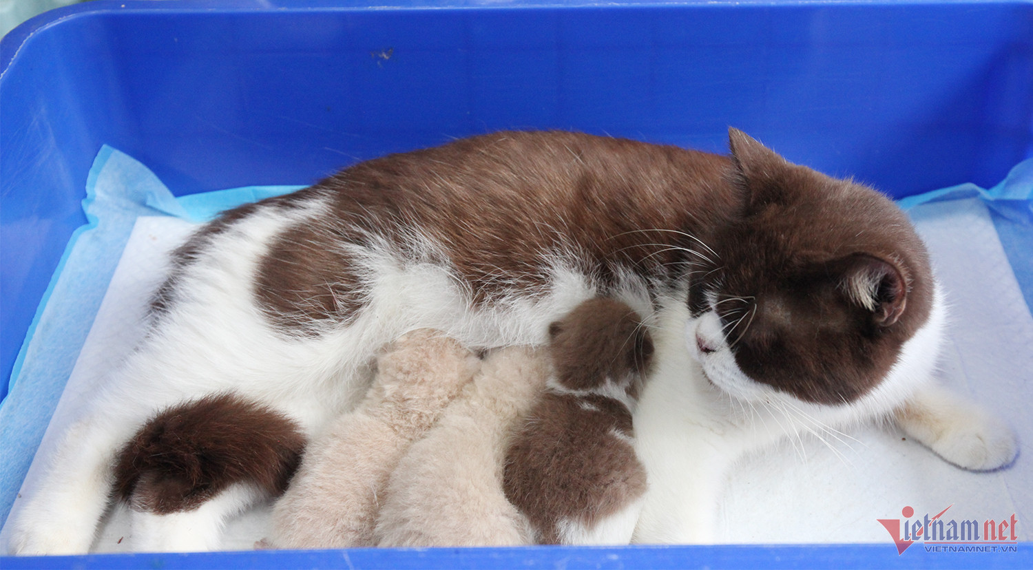 Chỉ tay vào mèo mẹ cùng đàn con đỏ hon giống cinnamon vừa sinh được 2 ngày, anh Thắng cho hay nuôi mèo kiểng khó nhất lúc nó sinh đẻ, yêu cầu chăm sóc cẩn thận, ăn uống cầu kỳ hơn. Mèo con mới sinh, anh sẽ tách ra, chăm sóc với chế độ riêng để đạt chất lượng tốt nhất.