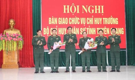 Tuyên Quang: Chiều 10/1, dưới sự chủ trì của Thiếu tướng Phạm Hồng Chương, Tư lệnh Quân khu 2 và Phó Bí thư Tỉnh ủy, Chủ tịch UBND tỉnh Phạm Minh Huấn, Bộ Chỉ huy quân sự tỉnh Tuyên Quang đã tổ chức hội nghị bàn giao chức vụ Chỉ huy trưởng, Bộ Chỉ huy Quân sự tỉnh.