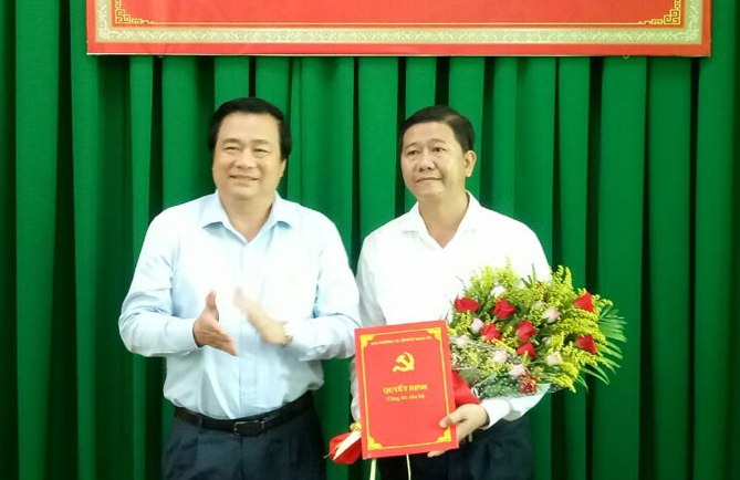 Bí thư Tỉnh ủy Long An Phạm Văn Rạnh trao quyết định và chúc mừng ông Võ Thành Trí |