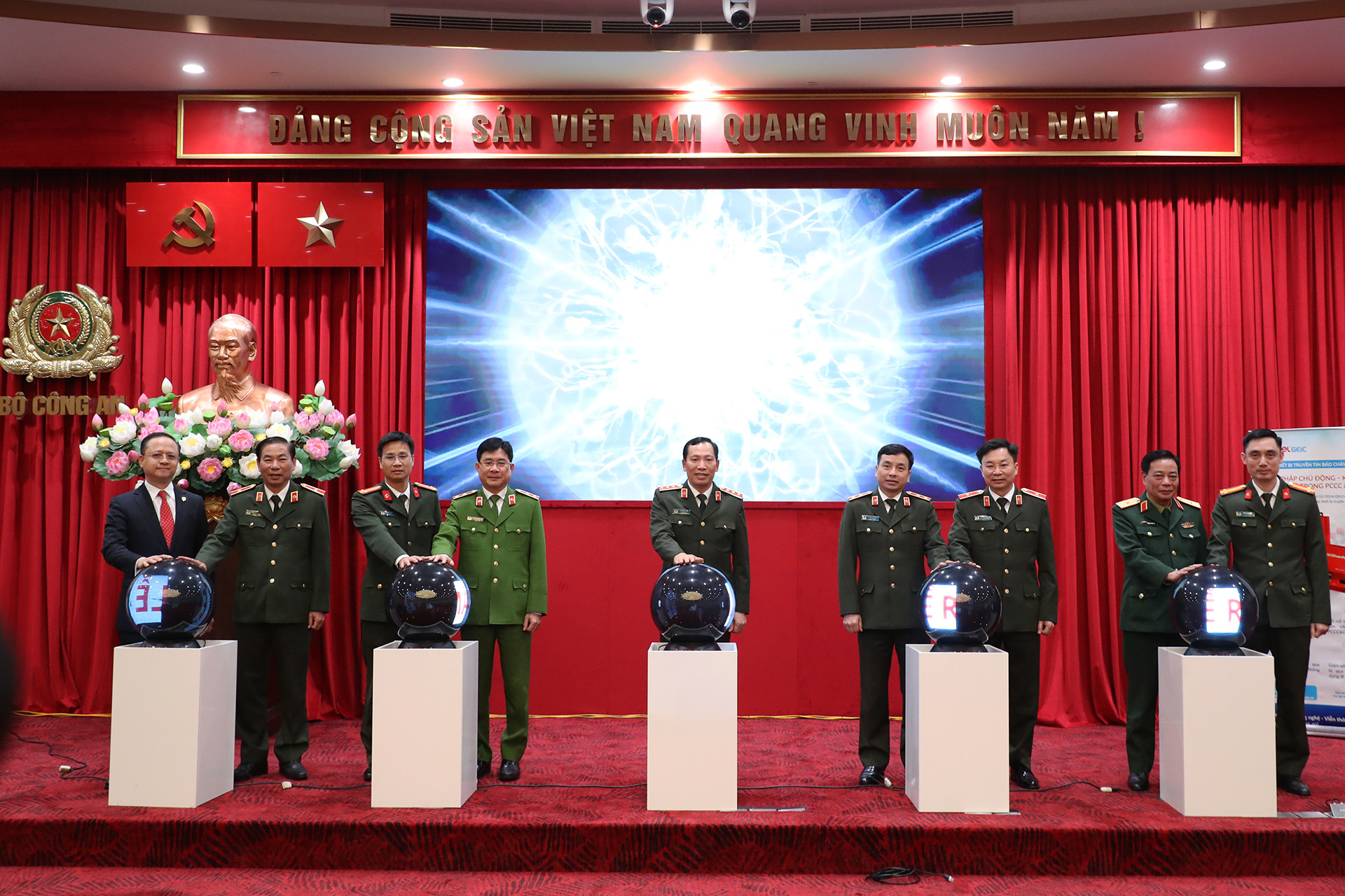 Thay mặt Đảng ủy Công an Trung ương và lãnh đạo Bộ Công an, Thượng tướng Nguyễn Ngọc Lâm, Thứ trưởng Bộ Công an, trao quyết định và tặng hoa chúc mừng Trung tướng Nguyễn Tuấn Anh và Thiếu tướng Dương Đức Hải.