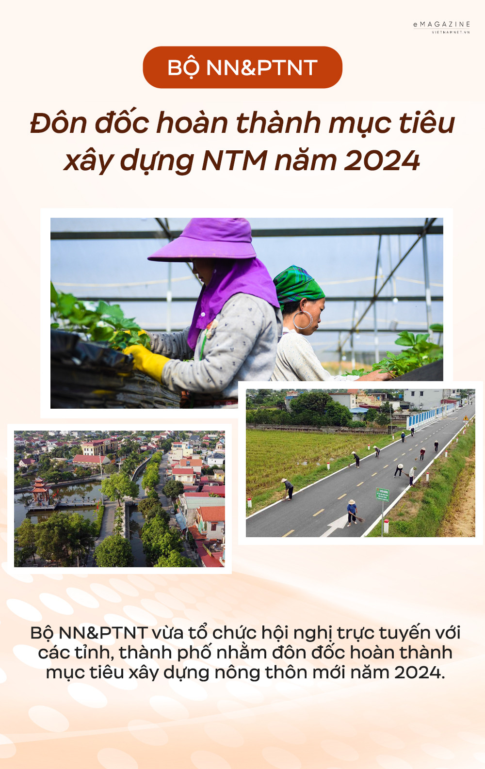 Để phấn đấu hoàn thành các mục tiêu, nhiệm vụ năm 2024 được cấp có thẩm quyền giao, làm nền tảng để phấn đấu hoàn thành mục tiêu của Chương trình giai đoạn 2021 - 2025, trong năm 2024, Bộ Nông nghiệp và Phát triển nông thôn đề nghị UBND, Ban Chỉ đạo các chương trình mục tiêu Quốc gia giai đoạn 2021 - 2025 của các tỉnh, thành phố trực thuộc trung ương tập trung, quyết liệt chỉ đạo triển khai thực hiện chương trình ở tất cả các cấp, các ngành để hoàn thành các mục tiêu về xã đạt chuẩn nông thôn mới, nông thôn mới nâng cao, nông thôn mới kiểu mẫu; huyện đạt chuẩn nông thôn mới, nông thôn mới nâng cao, thị xã/thành phố hoàn thành nhiệm vụ xây dựng nông thôn mới và cấp tỉnh hoàn thành nhiệm vụ xây dựng nông thôn mới mà UBND cấp tỉnh đã đăng ký đạt được trong năm 2024.