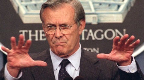 Câu nói nổi tiếng: “Nó xảy ra và khá lộn xộn. Và tự do là sự lộn xộn. Người tự do được tự do làm điều sai lầm hay điều xấu. Họ cũng được tự do sống cuộc đời của mình và làm những điều tuyệt vời, và đó là những gì xảy ra ở đây", 11/4/2003, trả lời trước những quan ngại về tình trạng bất ổn ở Iraq sau khi Saddam Hussein bị lật đổ.