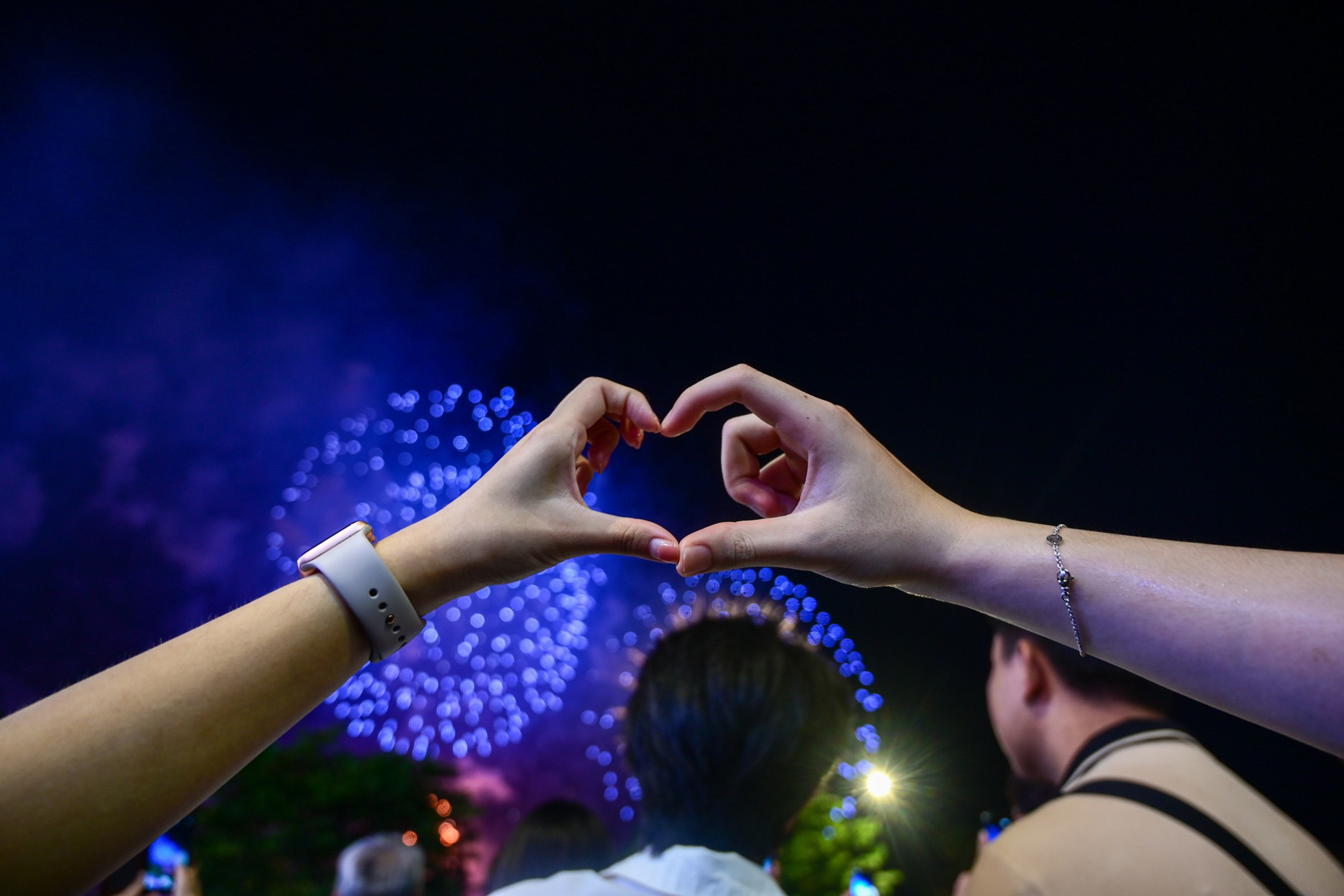 Trang (TP. Thủ Đức) cùng bạn của mình chụp selfie với màn pháo hoa rực rỡ.