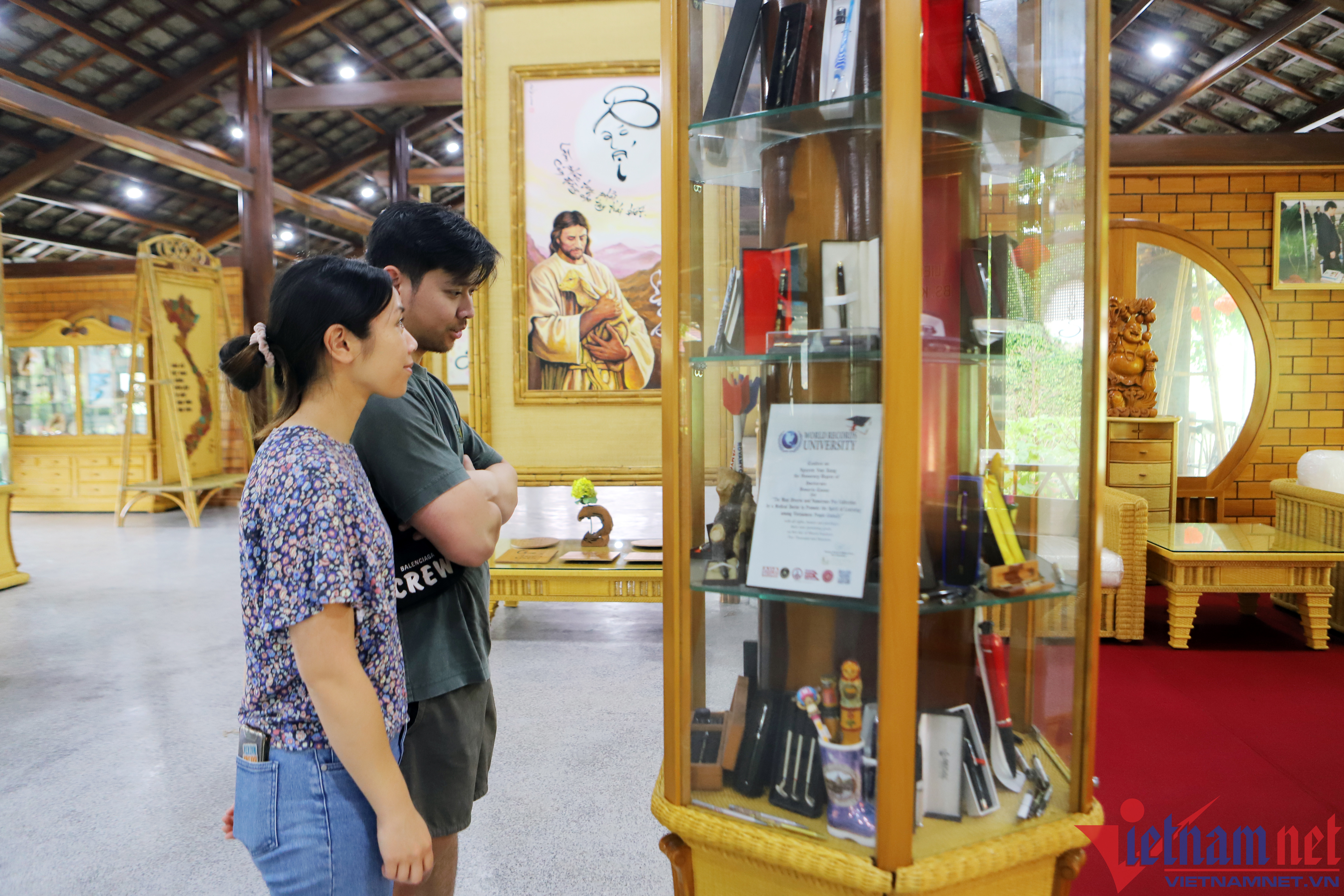 Gần Tết, ông Nguyễn Văn Xáng (63 tuổi) tỉ mẩn lau chùi những cây bút chất đầy các tủ kính. Chúng trông độc đáo, lạ mắt, được sắp xếp theo từng chủ đề.