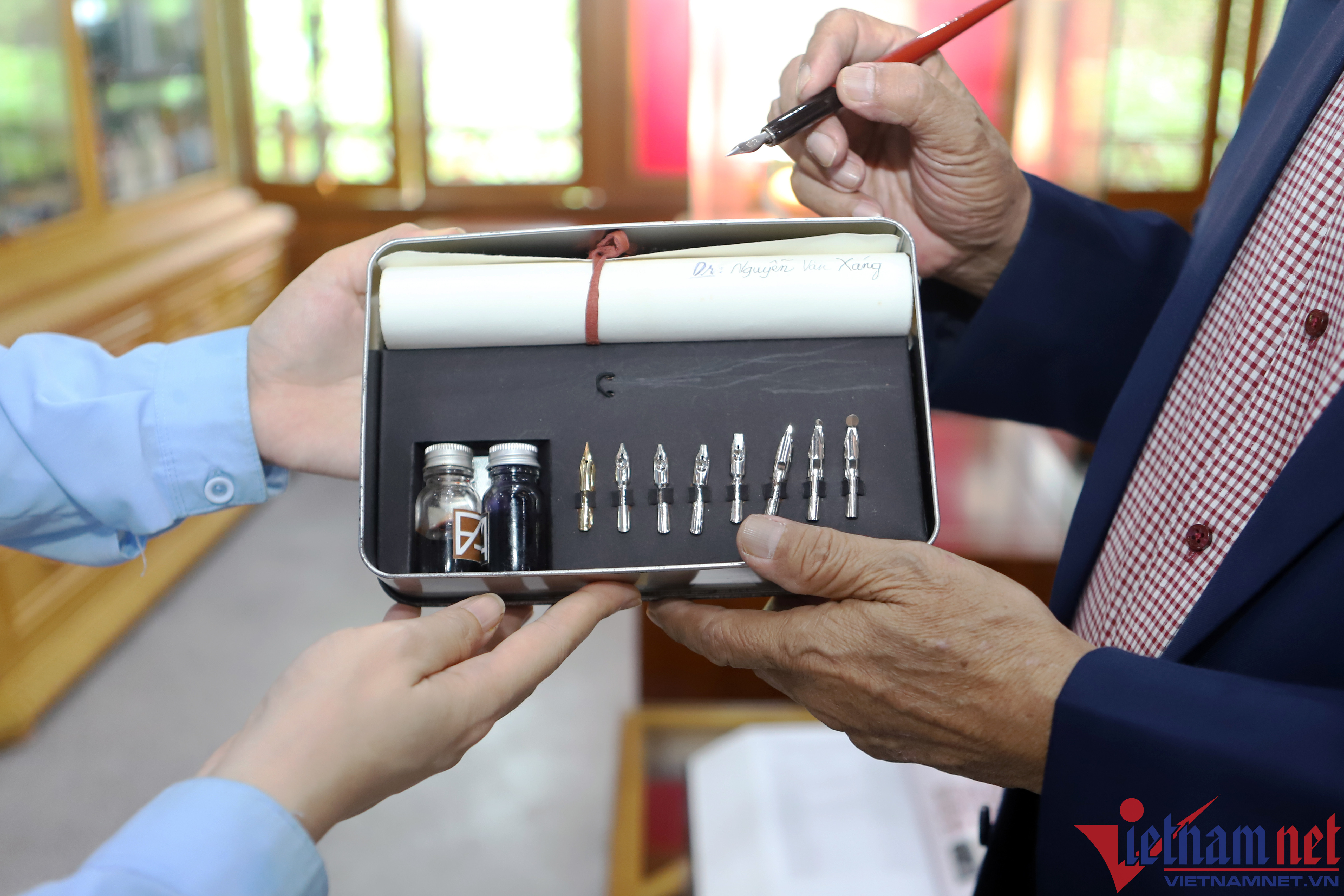 “Cây bút như một phần nào đó giúp tôi tiếp cận được con chữ. Hồi còn bé, nhiều khi phải góp nhặt từng chiếc bút cũ rồi xem bên trong còn mực không để sử dụng, nên tôi luôn trân quý chúng”, ông Xáng chia sẻ.