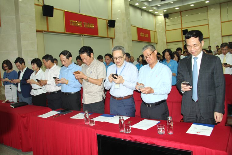 Các đại biểu tham dự chung tay nhắn tin ủng hộ Chương trình. |