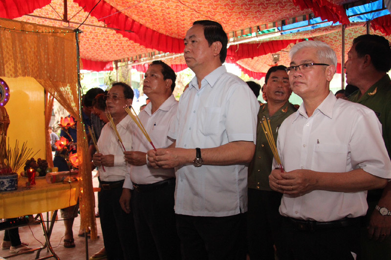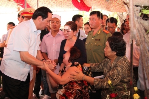 | Bộ trưởng Trần Đại Quang đến thắp hương và chia buồn với gia đình các nạn nhân xấu số. |