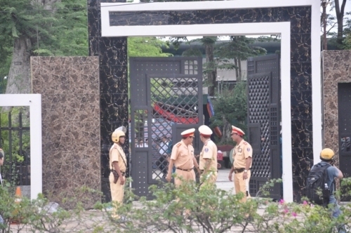 Đoàn xe vừa vào thì cánh cổng biệt thự lập tức được đóng chặt lại. An ninh xung quanh được thắt chặt. |