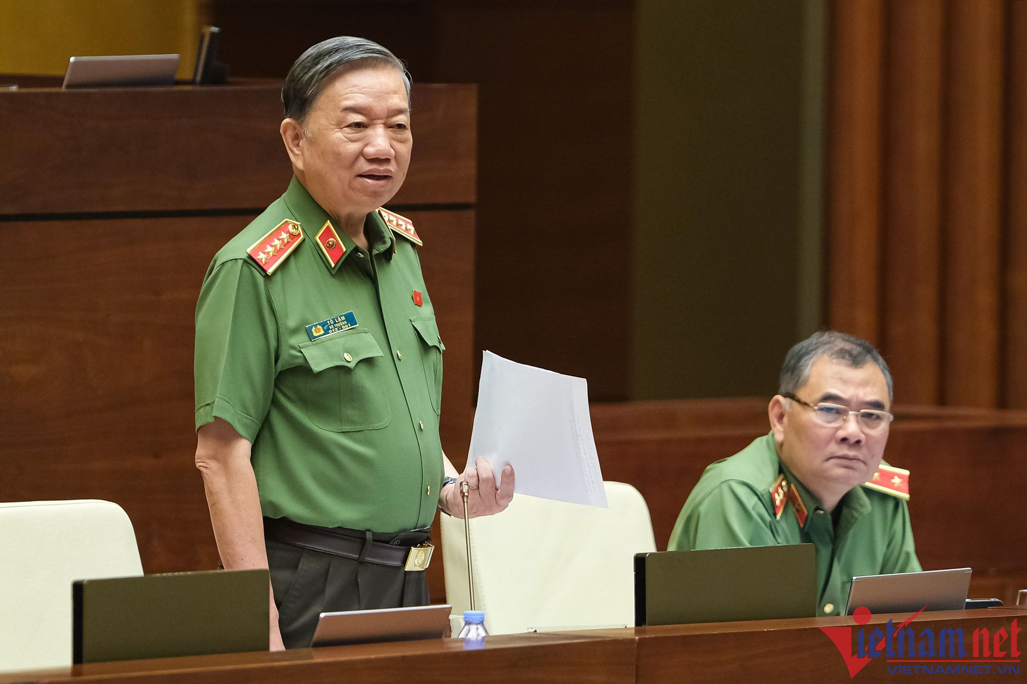 Phó Chủ tịch Quốc hội Trần Quang Phương yêu cầu Bộ trưởng Tô Lâm trả lời thêm về tình trạng giả danh cán bộ công an, giao thông lừa đảo cũng như cách thức xử lý.