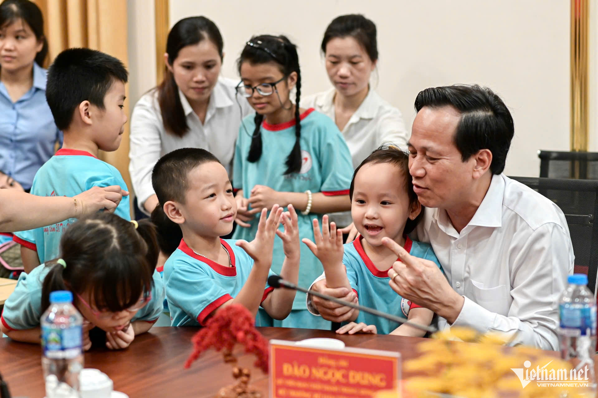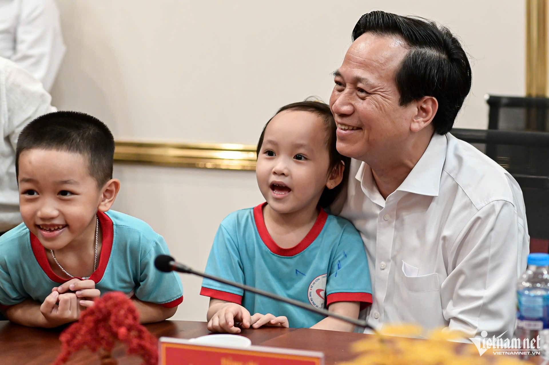 Sau khi tặng quà các em nhỏ, Bộ trưởng Đào Ngọc Dung tặng trung tâm phần quà cùng với lời nhắn nhủ: "Chúc cho trung tâm luôn là mái ấm gia đình đúng nghĩa của các em nhỏ".