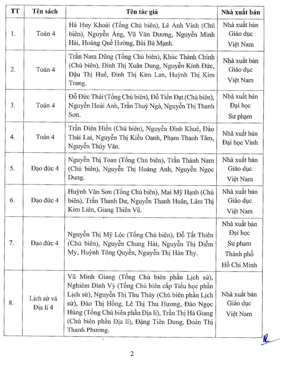 Căn cứ danh mục được công bố, các địa phương tổ chức lựa chọn sách giáo khoa phù hợp để triển khai Chương trình GDPT 2018 áp dụng cho các lớp 4, lớp 8 và lớp 11 từ năm học 2023 - 2024.