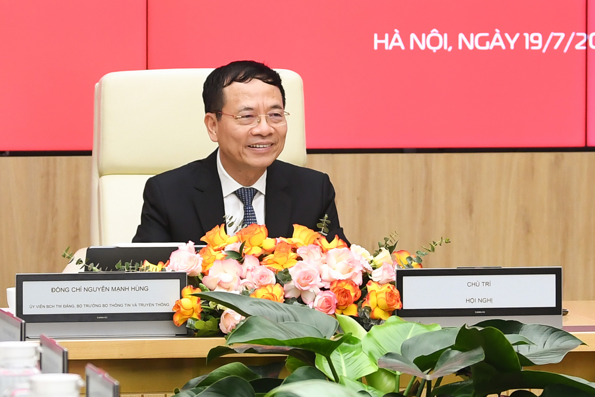 Sau buổi tọa đàm, Bộ trưởng Nguyễn Mạnh Hùng đã có bài phát biểu định hướng phát triển cho Tập đoàn và ngành viễn thông trong 10 năm tới.