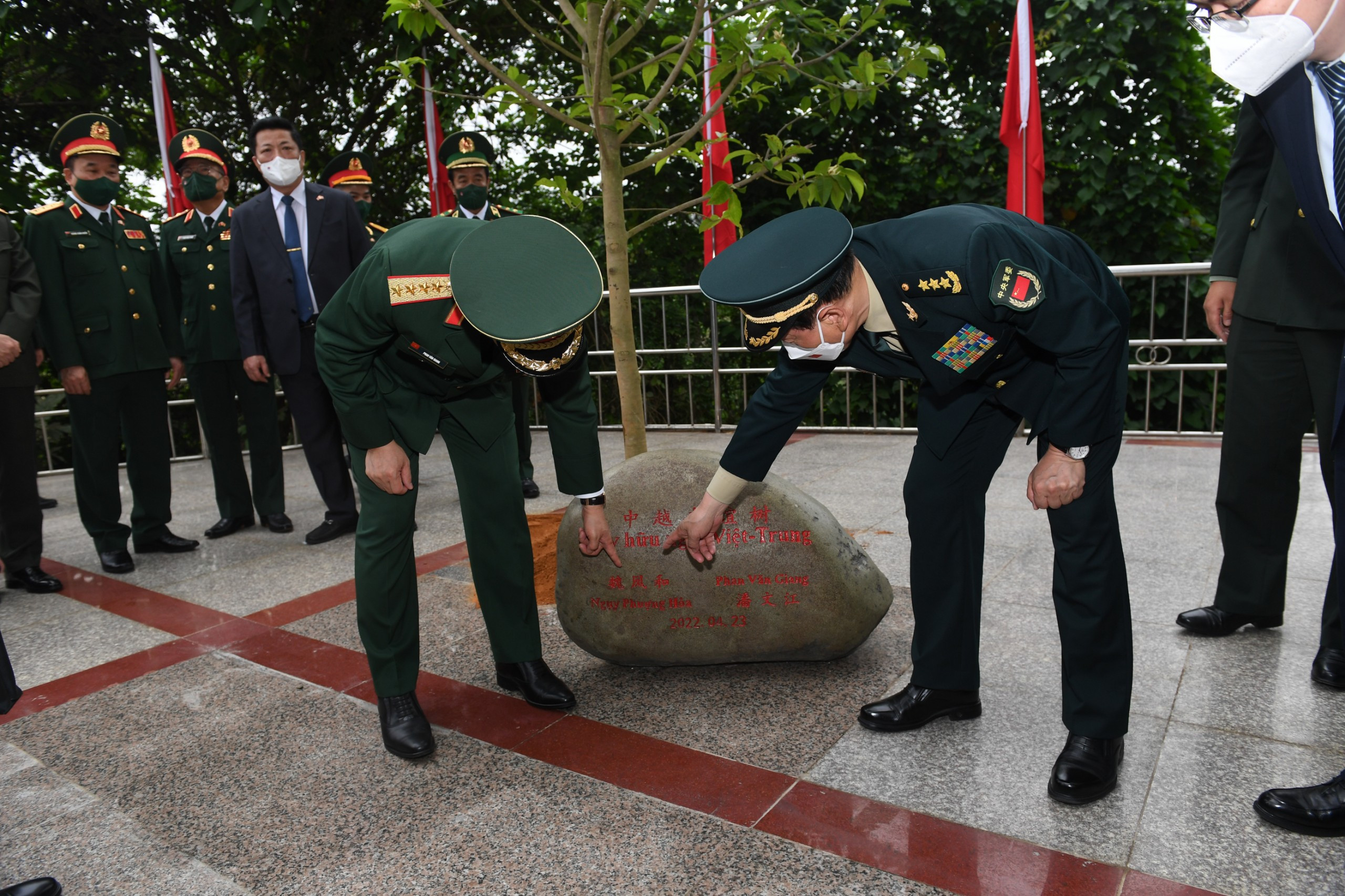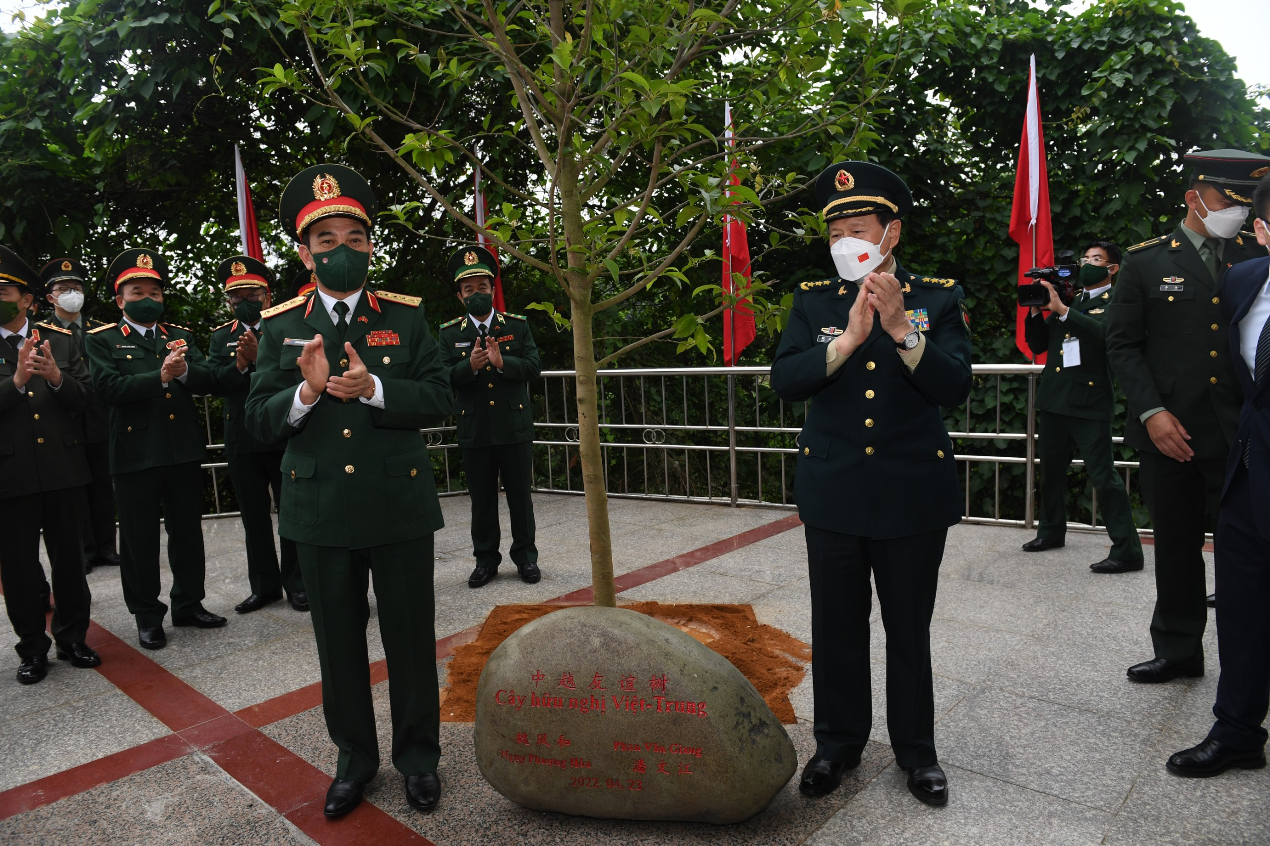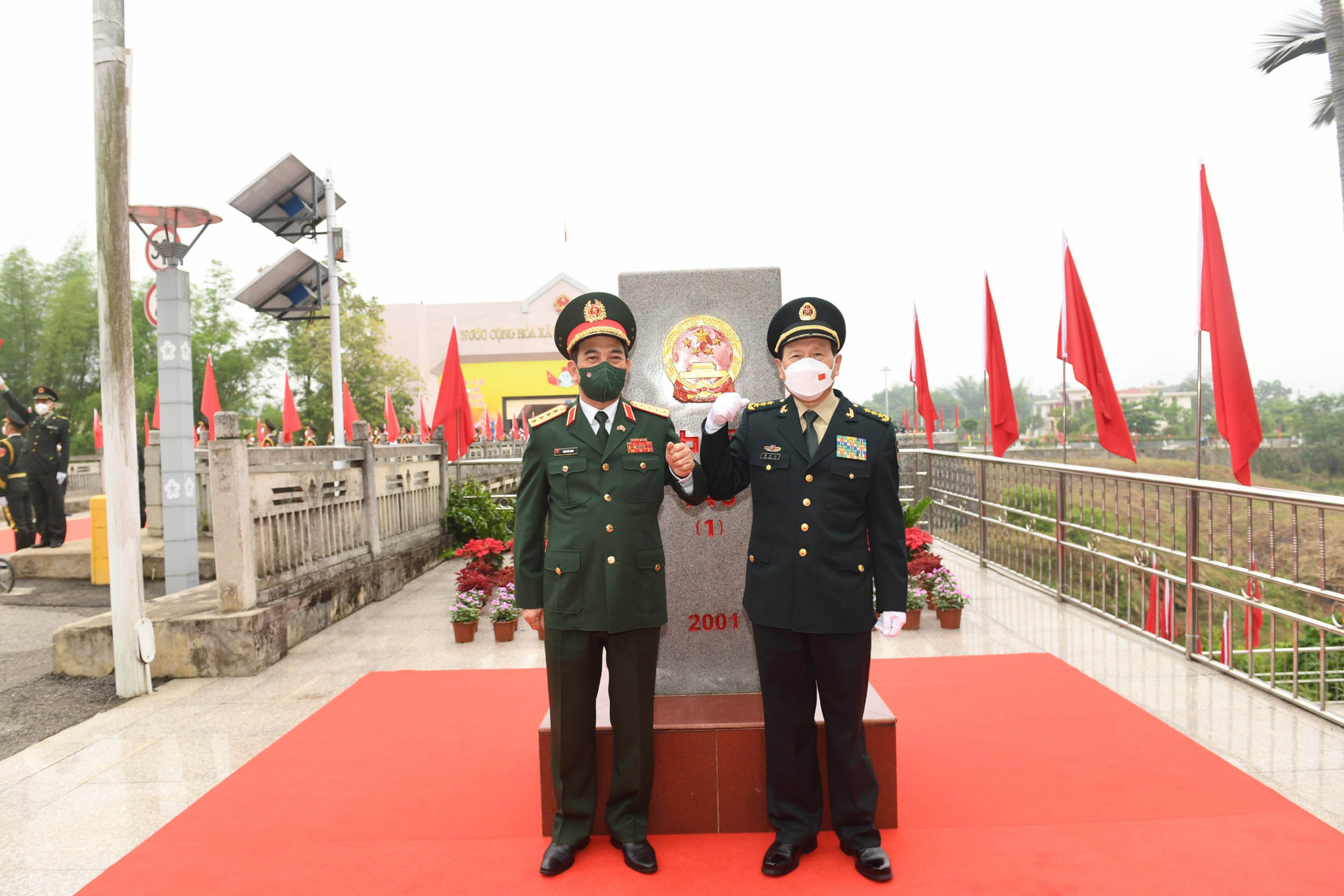 Ngay sau lễ đón, Bộ trưởng Quốc phòng hai nước đã thực hiện nghi lễ chào cột mốc biên giới, tô sơn cột mốc, trồng cây hữu nghị tại cửa khẩu quốc tế Thủy Khẩu.