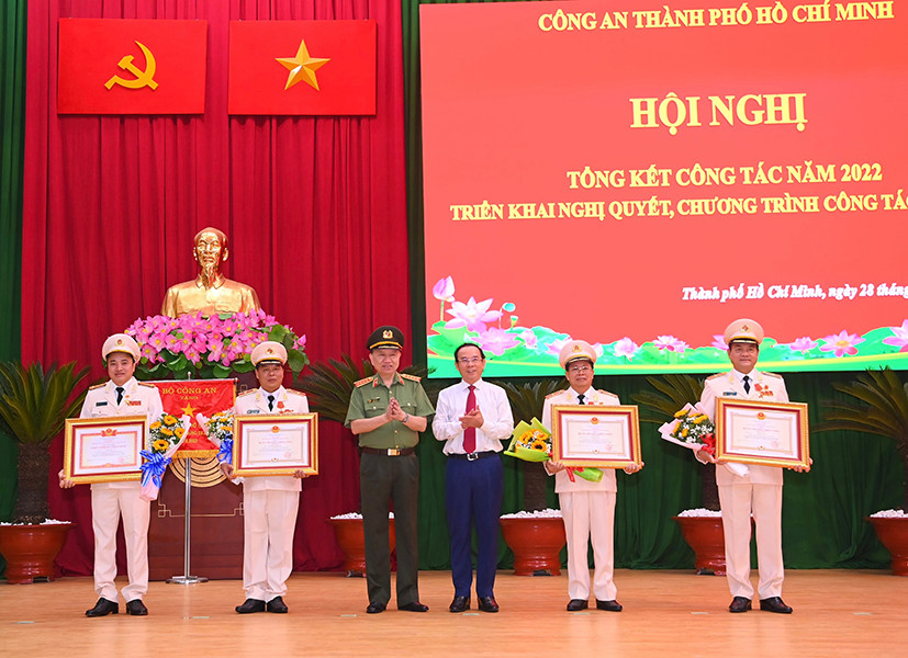 Tại hội nghị, thừa ủy quyền của lãnh đạo Đảng, Nhà nước, Bộ trưởng Tô Lâm và Bí Thư Thành ủy TP.HCM Nguyễn Văn Nên đã trao những phần thưởng cao quý tặng các tập thể, cá nhân thuộc Công an TP.HCM.