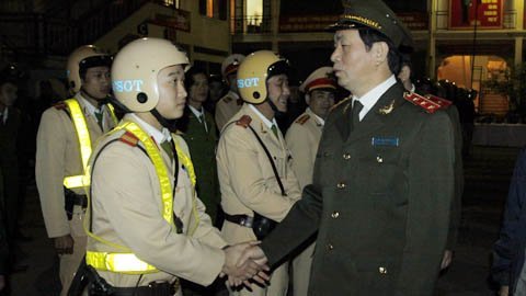 Trước thời khắc chuyển tiếp sang năm Nhâm Thìn, Bộ trưởng Công an đã đến chúc Tết và kiểm tra công tác ứng trực một số đơn vị của Công an Hà Nội.