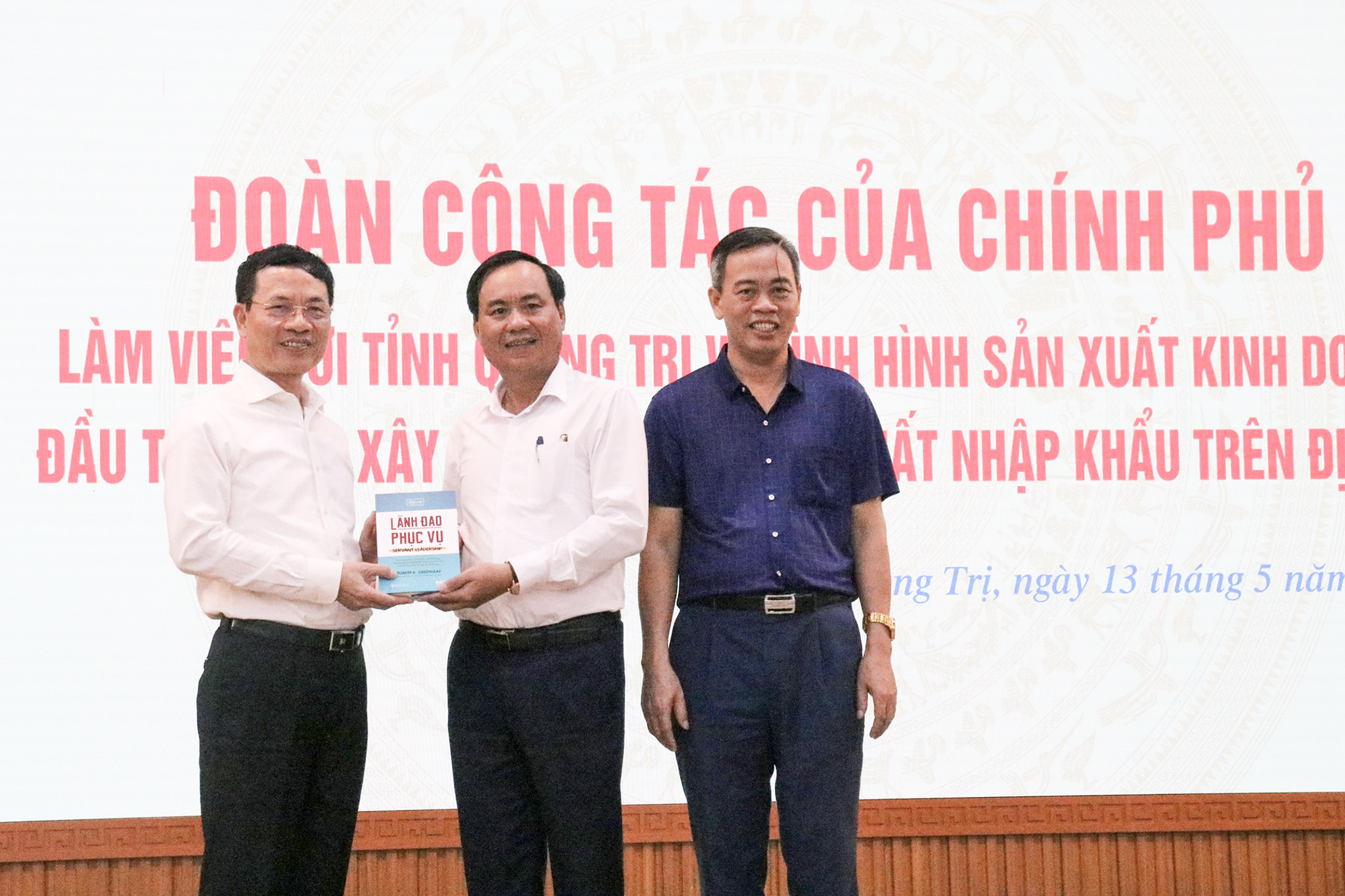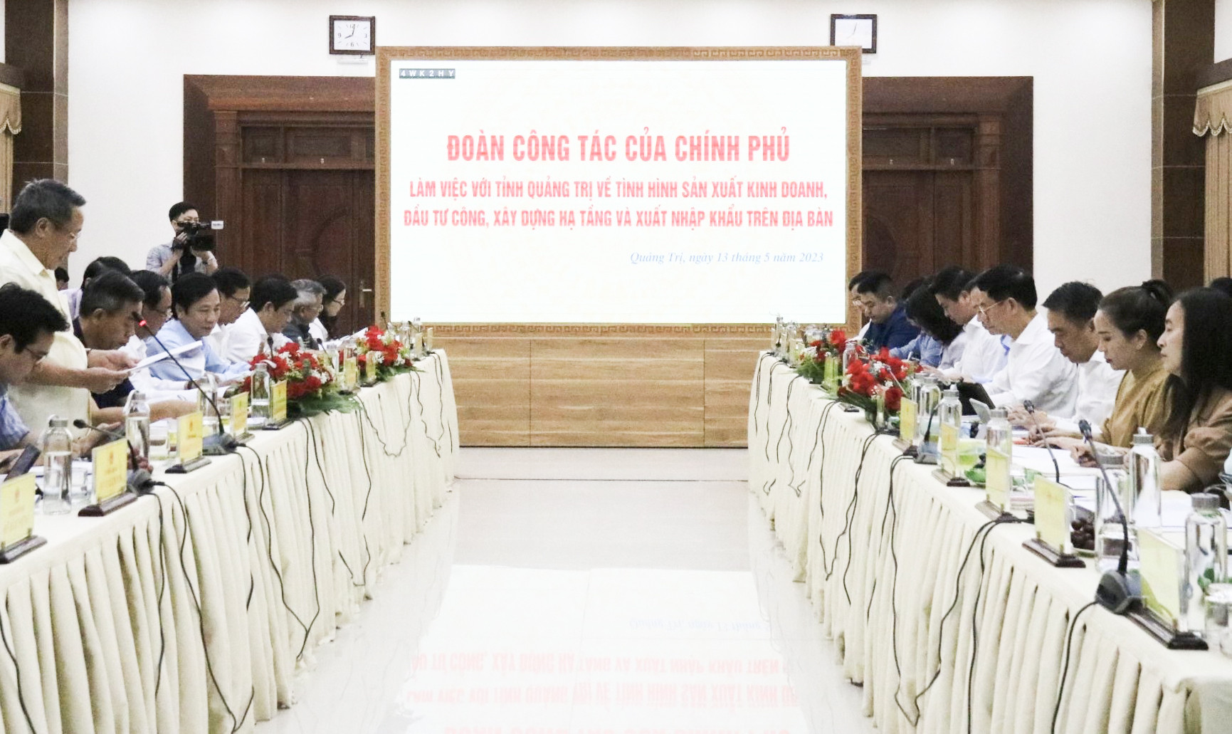 Thực hiện ý kiến chỉ đạo của Thủ tướng Chính phủ tại Công điện số 238/CĐ-TTG ngày 10/4/2023 về thúc đẩy sản xuất kinh doanh, đầu tư xây dựng và xuất nhập khẩu trong thời gian tới, sáng 13/5, tại trụ sở UBND tỉnh Quảng Trị, Bộ trưởng Bộ TT&TT Nguyễn Mạnh Hùng dẫn đầu đoàn công tác của Chính phủ đã có buổi làm việc với địa phương này.