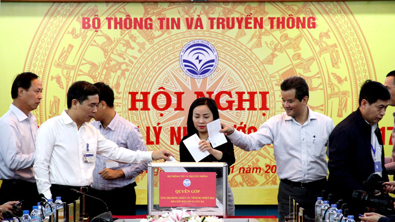 Ngay tại Hội nghị Giao ban quản lý nhà nước tháng 10/2017 tại Hà Nội sáng nay, 6/11, hưởng ứng lời kêu gọi của Ban Thường vụ Công đoàn TT&TT VN, Bộ trưởng Bộ TT&TT Trương Minh Tuấn, các lãnh đạo Bộ và đại biểu tham dự hội nghị đã đồng lòng ủng hộ đồng bào bị thiệt hại vì cơn bão số 12.