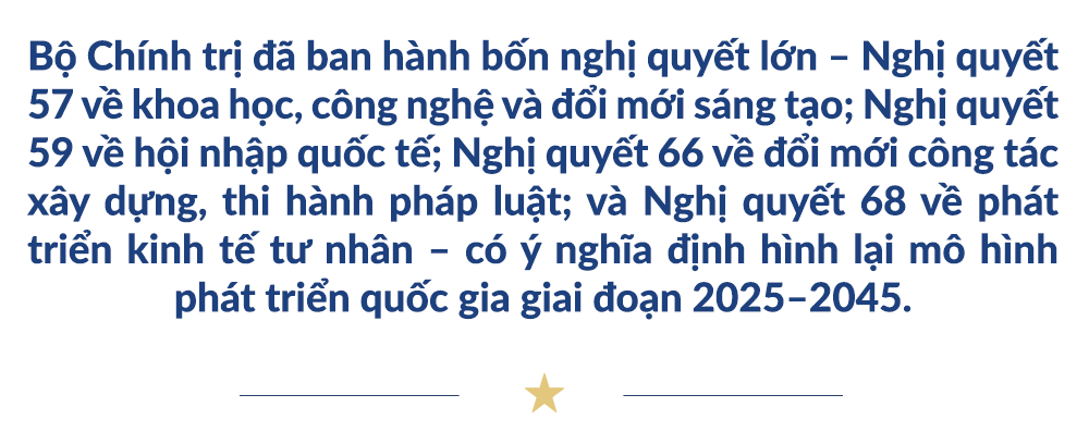 Bốn nghị quyết bổ sung lẫn nhau: không có pháp luật minh bạch thì tư nhân khó mạnh; không có tư nhân mạnh thì đổi mới sáng tạo khó lan tỏa; không có đổi mới sáng tạo thì hội nhập khó tạo giá trị gia tăng; không có hội nhập chủ động thì động lực cải cách trong nước yếu đi.