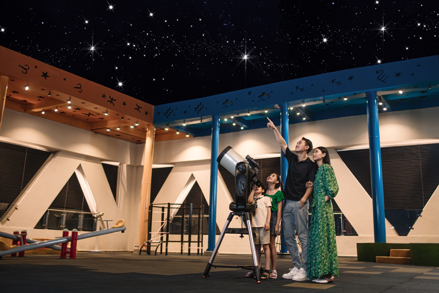 Trong khi đó, người yêu thích thiên hà có thể ngắm nhìn những vì tinh tú với trang bị kính viễn vọng chuyên nghiệp tại vườn thiên văn. Cả gia đình có thể cùng nhau đi từ bất ngờ này đến bất ngờ khác khi tìm hiểu những bí ẩn của không gian. Đây cũng là tiền đề nâng bước trẻ không ngừng khám phá và sáng tạo để thực hiện nhiều ý tưởng trong tương lai.