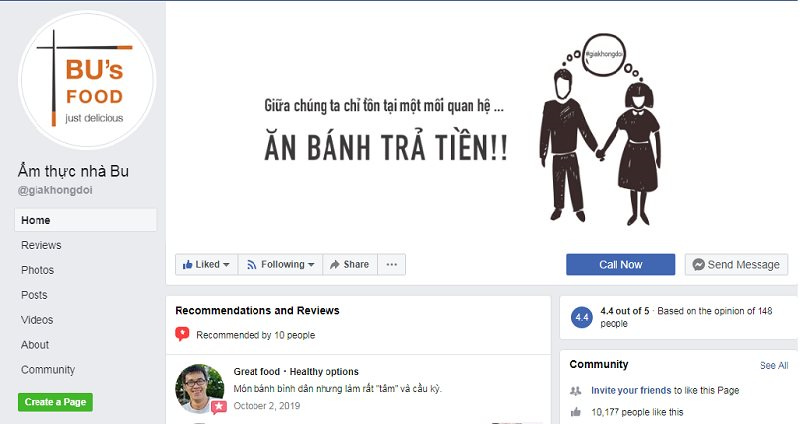 Fanpage Ẩm Thực Nhà Bu trên Facebook |