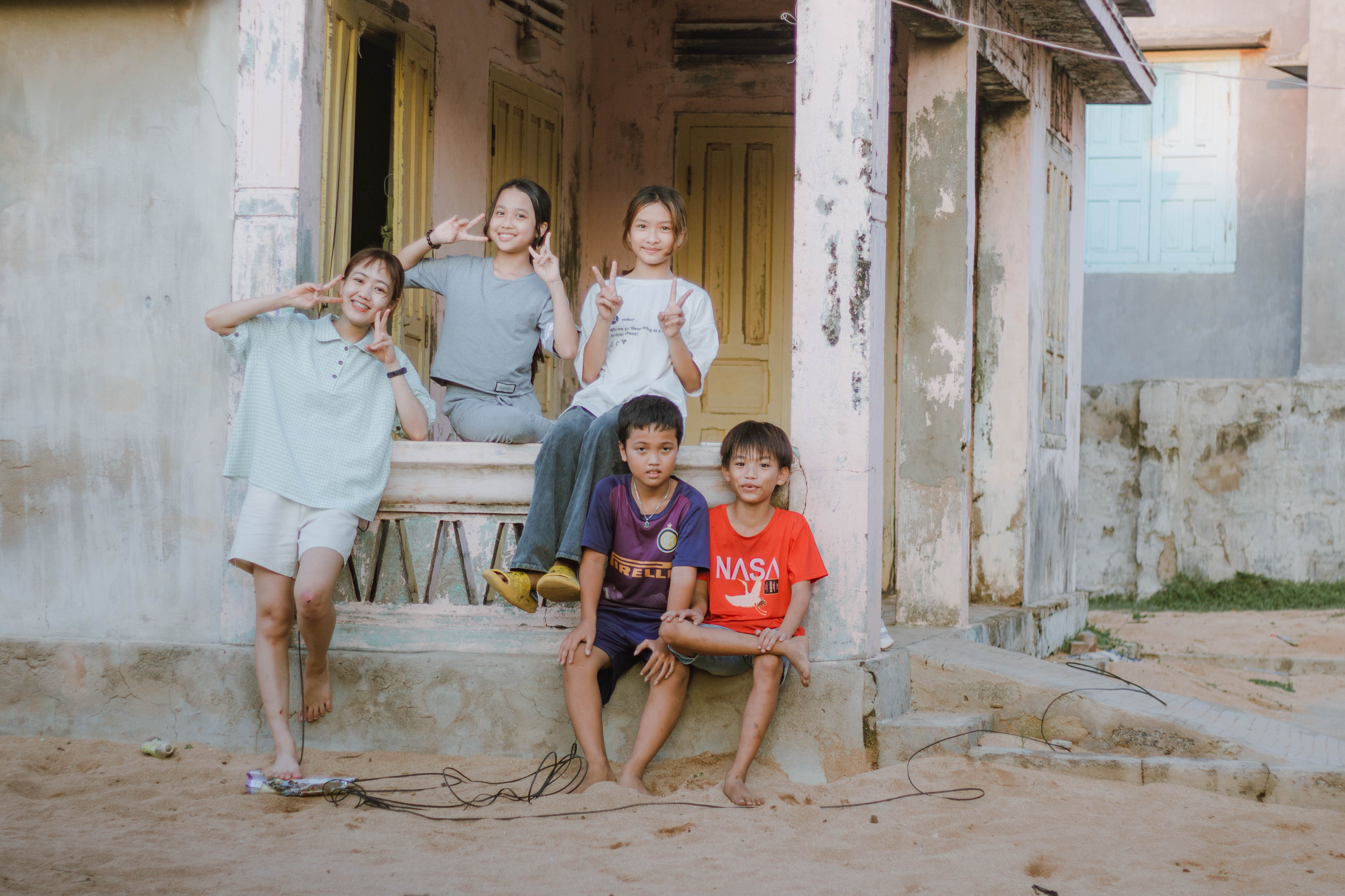 “Trong một buổi chiều đi lang thang, mình gặp mấy đứa nhỏ xóm Trâu. Tụi nhỏ thấy mình chụp ảnh thì vẫy tay, rồi chủ động chào, mình bắt chuyện và quen với tụi nhỏ. Mấy đứa hay rủ mình xuống chơi, chỉ là ngồi nói linh tinh những câu chuyện không tên, nghe mấy đứa nhóc cãi nhau những thứ vu vơ, rồi lại rủ nhau chơi bóng, tắm biển… thế cũng đủ thấy bình yên đến lạ.” Quỳnh chia sẻ.